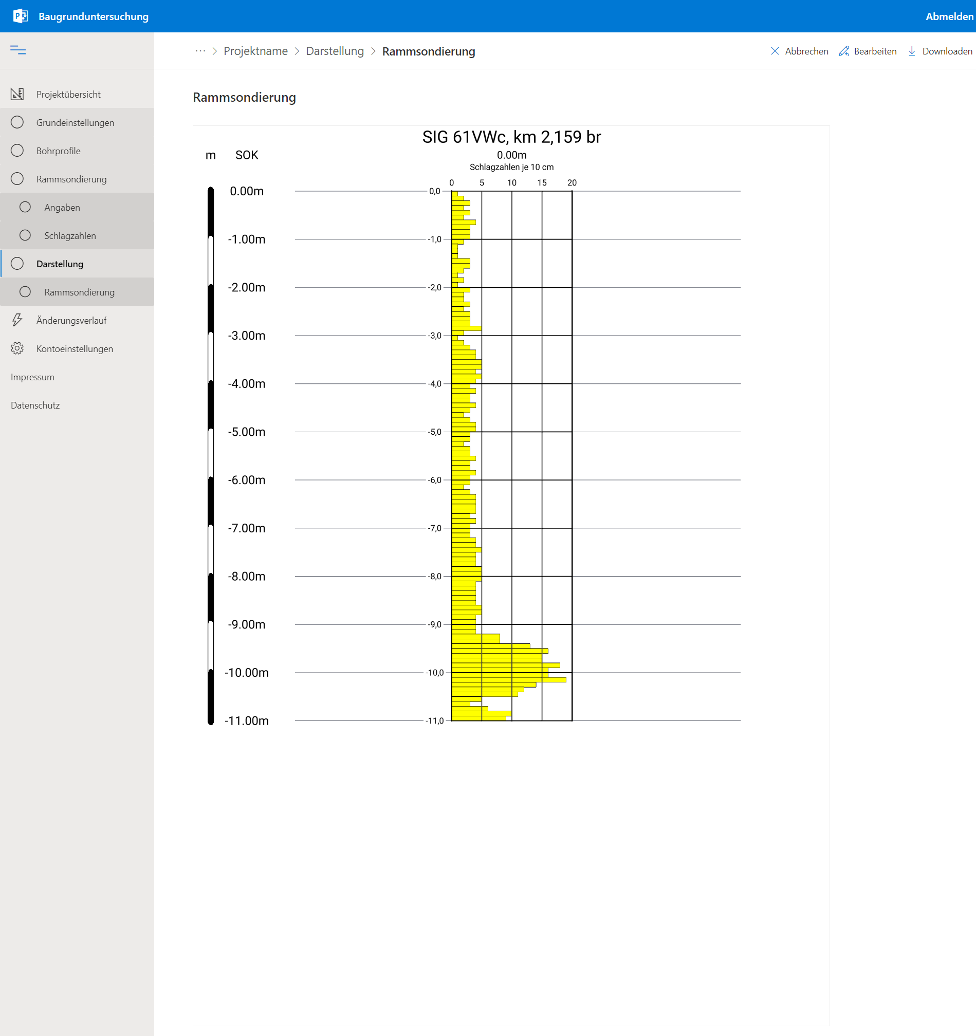 Wir haben die Anforderungen der BBG erfolgreich in einer webbasierten Softwarelösung umgesetzt. Neben einer zwei- und dreidimensionalen Darstellung der Bohrprofile werden auch die Ergebnisse der Rammsondierungen grafisch visualisiert. Anhand der Bohrprofile des zu erkundenden Grundstücks können die Beschaffenheiten flächig abgebildet werden. Die Eingabe der benötigten Daten erfolgt in enger Anlehnung an die auf den Baustellen üblichen Formulare zum händischen Ausfüllen. Dabei stand eine einfache und selbsterklärende Bedienbarkeit im Vordergrund der Entwicklung, sodass das Programm mit seinen Vorzügen ohne große Umgewöhnung genutzt werden kann.